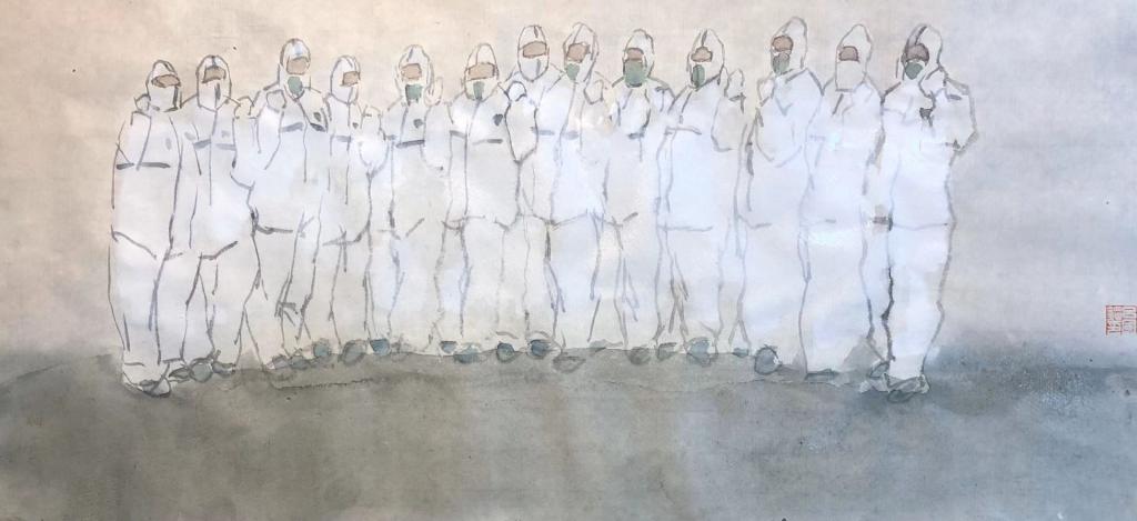 “绘画是我生活的重要部分,同时生活也会是绘画的一部分。我们说要贴近生活,当我们被生活中的许多事感动时,总是免不了要去表现,这也是一种抒发自己感情的行为。”艺术学院吕国钢老师告诉记者,这次疫情来得太突然,而且正值新春佳节,广大医护人员奔赴一线,日夜救护,精神、行为令人感动,于是他拿起画笔创作了系列国画作品共10幅,以笔作枪,用画笔记录着抗疫过程中的点点滴滴,记录下中国人面对磨难时的坚韧与顽强,表达对奋战在抗击新型冠状病毒肺炎疫情一线的白衣战士们的敬意。