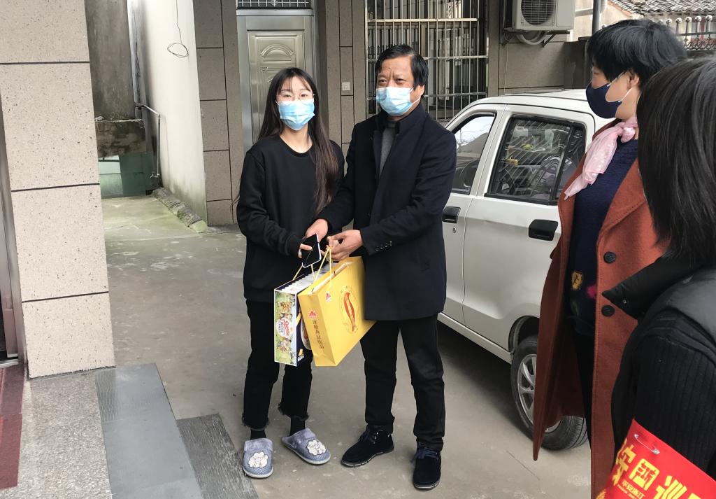 当日下午,周巷镇工会章主席与村干部一起,前往杨琳巧家对其家属进行关心慰问,并通过医院将其父母的关心与嘱托带回给坚守在岗位的杨琳巧。杨琳巧表示,家乡和医院的关心让她有了满满的获得感,她将继续为打赢疫情防控阻击战而努力。