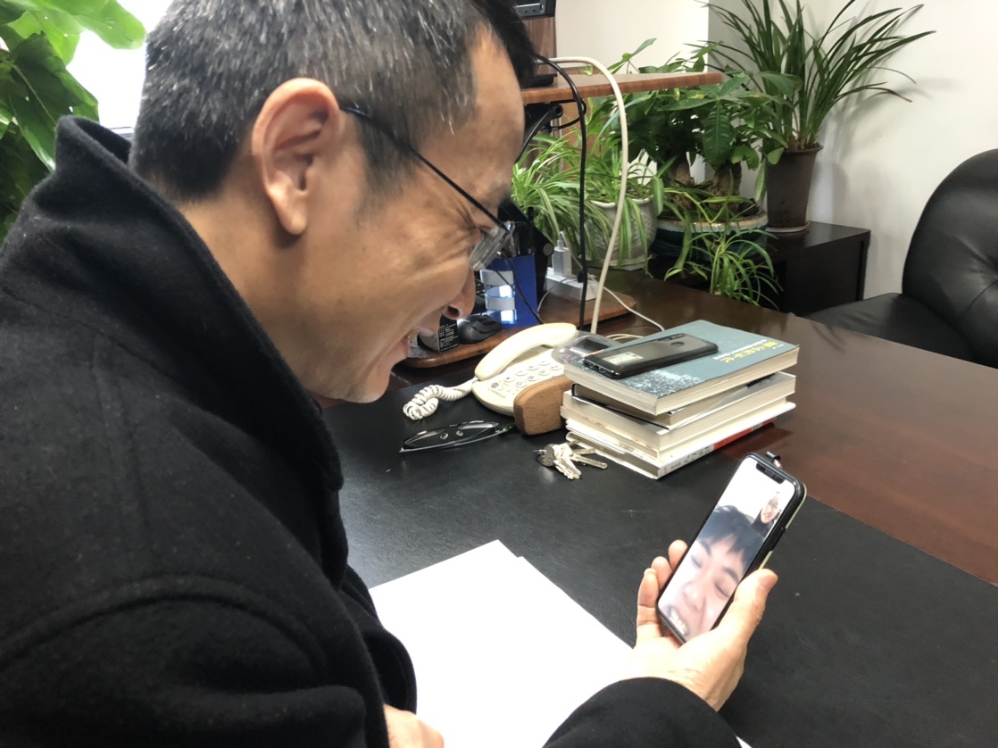 “你有没有吃过午饭?”“防疫工作进展顺利吗?”“现在身体情况怎么样?”“孩子现在的身体健康和学业情况如何?”“疫情结束后,欢迎来元培看看......”3月9-10日,叶访春、沈红卫先后与中国语言文学类1908班贾旭晖的父亲、河北省邯郸市大名县人民医院控制感染管理科主任贾永生医生,视觉传达设计专业1601班张意林的母亲、诸暨市人民医院呼吸与危重症学科一病区卢红医生视频连线,关切询问他们的身体和防疫工作情况,并对其表示感谢。叶访春和沈红卫表示,自疫情防控工作启动以来,他们舍小家、顾大家,把人民群众安全和身体健康放在第一位,义无反顾冲刺在疫情抗击最前线,展现出医护工作者的大爱仁心和责任担当。希望他们全力以赴做好疫情防控“最后一公里”,安心在一线战斗,加强自我防护,劳逸结合,争取早日战胜疫情、凯旋而归。同时也请他们放心,元培学院将坚决担负起教育教学责任,充分发挥网络课堂功能,确保“停课不停学、停课不停教”,全力确保子女学习不受影响、身心健康成长,为身在前线的家长努力解除后顾之忧。