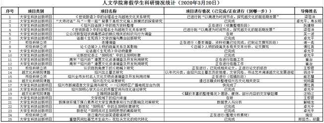 科研活动新进展。在校期间,人文学院学生共立项各级各类科研项目25项,参与学生达86人,人文学子居家期间不仅做到了“停教不停学”,而且积极贯彻“停教不停研”的理念。在缺少藏书丰富的图书馆、导师的当面指导和安静的学习研讨环境,以及无法进行团队的面对面交流等情况下,同学们努力克服种种困难,坚持科研探索。所有项目至今进展十分顺利。