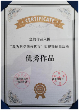 在疫情防控的关键时刻,我校化学化工学院科普志愿者积极参与浙江省科协和都市快报共同推出的“我为科学防疫代言”短视频征集活动,制作抗击疫情科普视频,将科学信息通过短视频的方式呈现出来,为打赢疫情防控阻击战贡献青春力量。