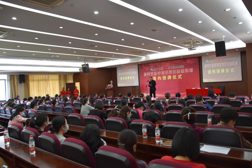 4月29日下午,绍兴文理学院附属妇幼保健院签约授牌仪式在绍兴市妇幼保健院行政楼四楼第一会议室隆重举行。副校长柳国庆,绍兴市卫健委副主任金红柱,校党委委员、组织部部长宣绍龙,绍兴市卫健委相关处室负责人、学校相关部处主要负责人、绍兴市妇保院党政班子成员、医学院党政班子成员和部分校附属医院相关领导等参加签约授牌仪式。