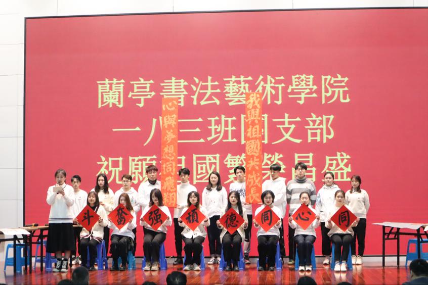 决赛现场,12个班级团支部依次上台汇报。商学院法学181班团支部分享属于他们的抗疫故事。人文学院汉师184班团支部将教学课堂引入团日活动,一首朗朗的《观刈麦》,道出了从我做起、节约粮食的坚定决心。数理信息学院数学182班团支部通过一幕幕爱国的小短剧,让大家看到祖国一路走来历经的千锤百炼,激励大家不忘初心,砥砺前行。化学化工学院应化181班团支部用歌声和舞蹈传递他们对抗美援战士们最崇高的敬意。教师教育学院小教181班团支部以一首《夜空中最亮的星》将抗美援朝的记忆再度带回。土木工程学院建筑181班团支部通过一堂别开生面的班会课,展示了众志成城抗疫情下青年团员的勇气与担当。兰亭书法艺术学院书法183班团支部以一幅《会稽山居图》,一枚“乘风破浪,坚毅前行”的篆刻作品,发出青春梦想与祖国建设共同飞扬的青春最强音。化学化工学院高分子181班团支部展示了他们利用自己的专业知识,自制消毒液,解决供应难题,展现了绍大化工学子的优秀专业素养和积极回报社会的青春力量。医学院临床174班团支部重温了医学生誓言,“健康所系,性命相托”,无论何时他们必将牢记此刻的承诺。数理信息学院数学181班团支部结合自身专业特色,将教师梦融入中国梦,体现了青年学子的职业梦想。马克思主义学院思政191班团支部通过诗歌朗诵的形式,用声音的温度传递爱的力量。纺织服装学院纺工192班团支部从自身出发,号召青年让梦想照进现实,练就过硬本领,投身强国伟业。