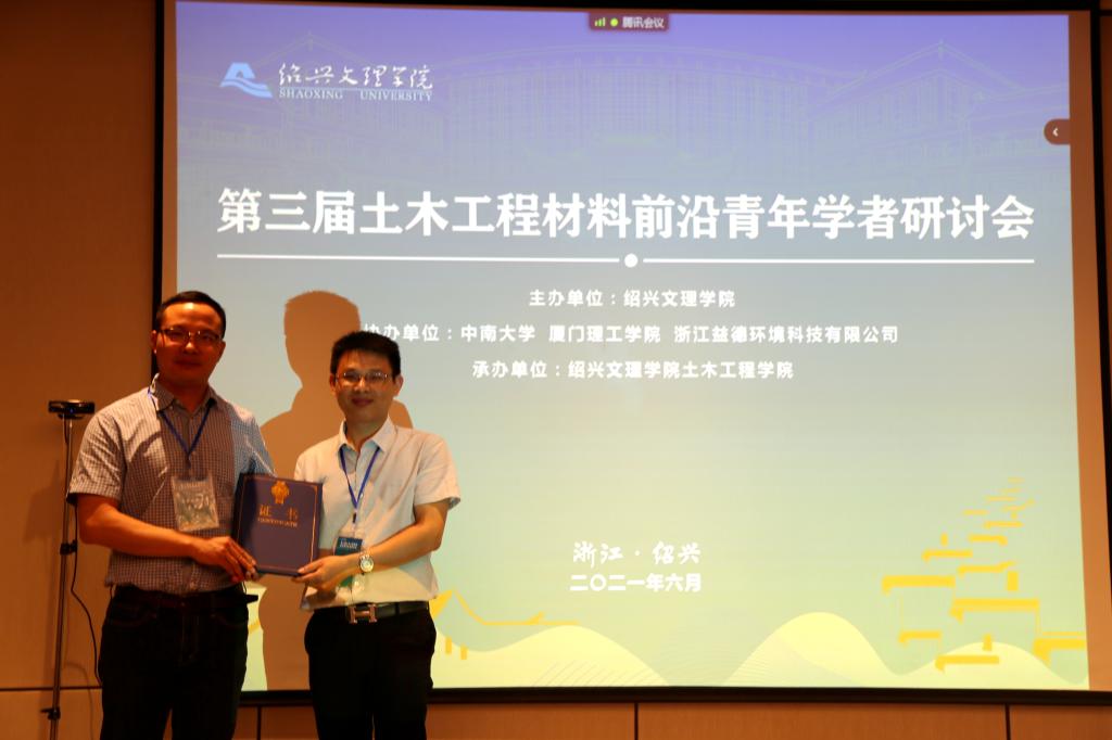 6月26日上午,由我校主办,中南大学、厦门理工学院、浙江益德环境科技有限公司协办的第三届土木工程材料前沿青年学者研讨会在绍兴饭店举行。来自包括同济大学、中南大学等国内知名高校的20余位省部级以上青年人才参加本次研讨会,共同交流土木工程材料前沿研究成果。研讨会特邀清华大学冯鹏教授、重庆大学李正良教授、兰州交通大学蔺鹏臻教授、暨南大学袁鸿教授为会议点评专家。副校长陈均土,土木工程学院相关负责人、教师参加会议。
