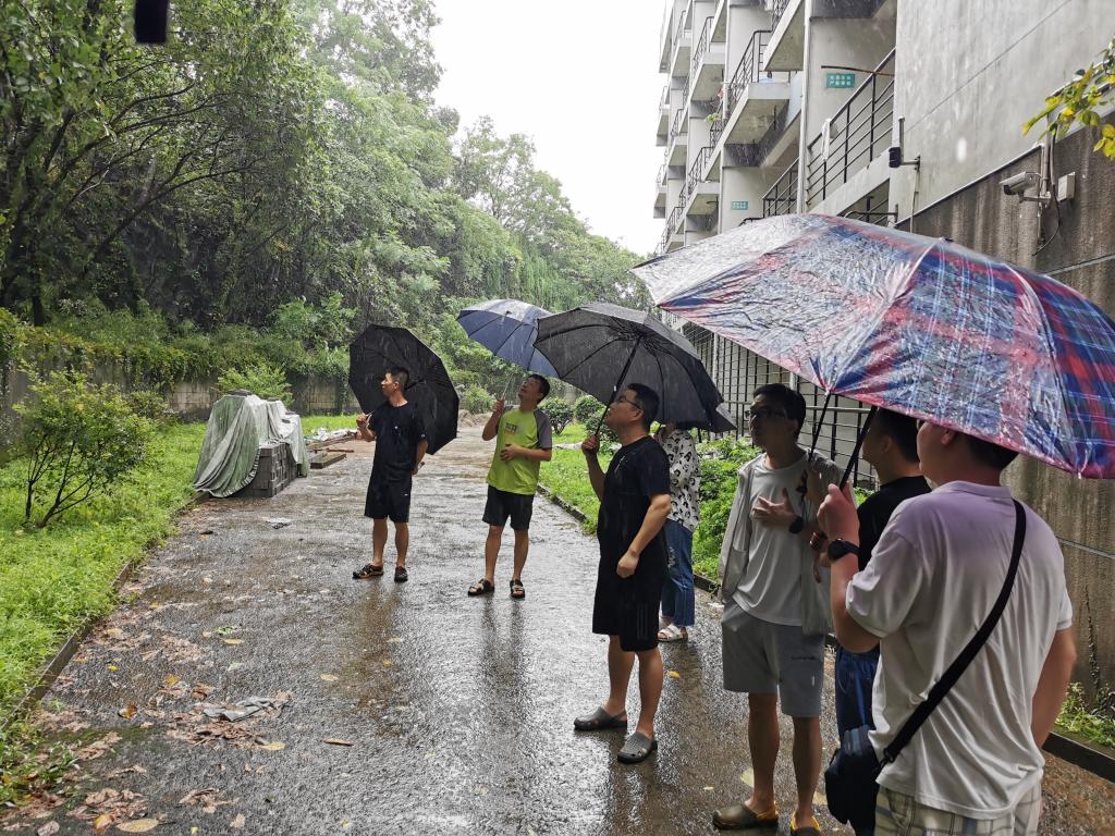 当日中午,服务队全体队员根据学校要求,实地踏勘了河西危化品仓库、南山10幢学生公寓后山边坡、校园各地下室防水设施、南山校区内河等重点区域,并以书面形式向学校提交情况说明。