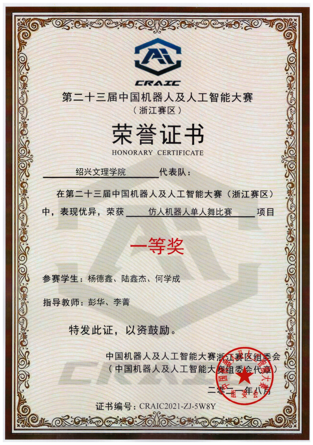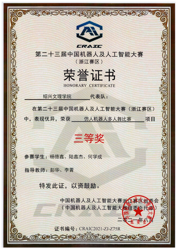 2021年中国机器人及人工智能大赛(浙江赛区)日前落下帏幕,我校机械与电气工程学院的3支队伍(共11位学生)参加了仿人机器人单人舞、仿人机器人多人舞两个赛项。经过激烈角逐,最终获得省级一等奖2项,省级三等奖1项,并获得参加2021年中国机器人及人工智能大赛(国赛)的竞赛资格。
