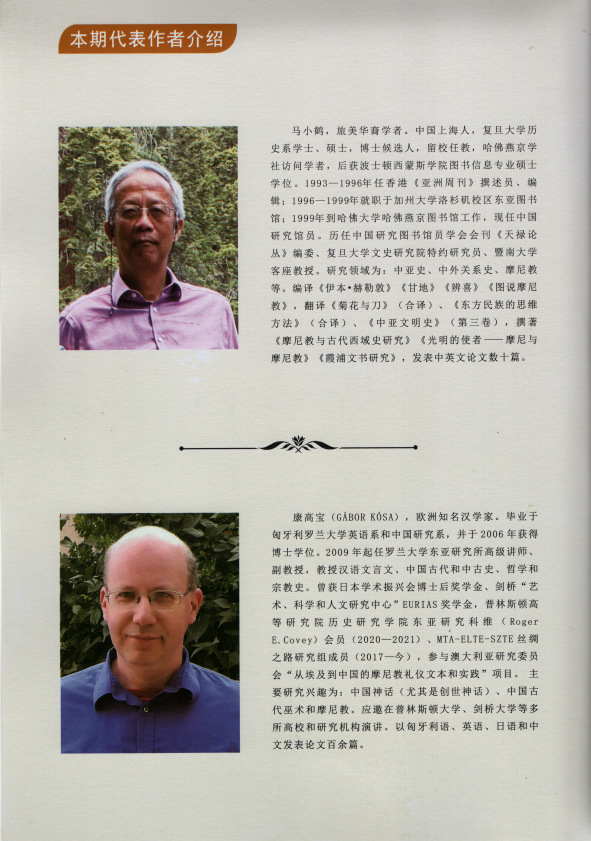 康高宝来自第一个与中国签署“一带一路”合作备忘录的欧洲国家匈牙利,是匈牙利名校罗兰大学东亚研究所的专家,长期从事“一带一路”历史文化研究,《福建摩尼教文书中的<下部赞>引文辨析》是其最新研究成果。该文深入分析中古以后通过海上丝绸之路逆向从中亚传入中国的摩尼教在福建衍生的文书,及其与敦煌文献《下部藏》的关系,揭示中国唐代可能存在一种过去鲜为人知的大部头赞美诗集,对国际“显学”敦煌学和唐代文学研究均有一定价值。马小鹤长期在美国名校加州大学洛杉矶校区和哈佛大学哈佛燕京图书馆工作,是中外关系史和摩尼教研究的著名专家。《民国<平阳县志>摩尼教资料新考》基于对世界各国学者多语体文献的熟稔把握,深入阐述中古以后由闽入浙、在温州市平阳县衍生的摩尼教文献的历史文化内涵,揭示了宋代以后中国东南地区的士民习俗变迁,对越地文化名人陆游研究也提供了新的材料和视野。