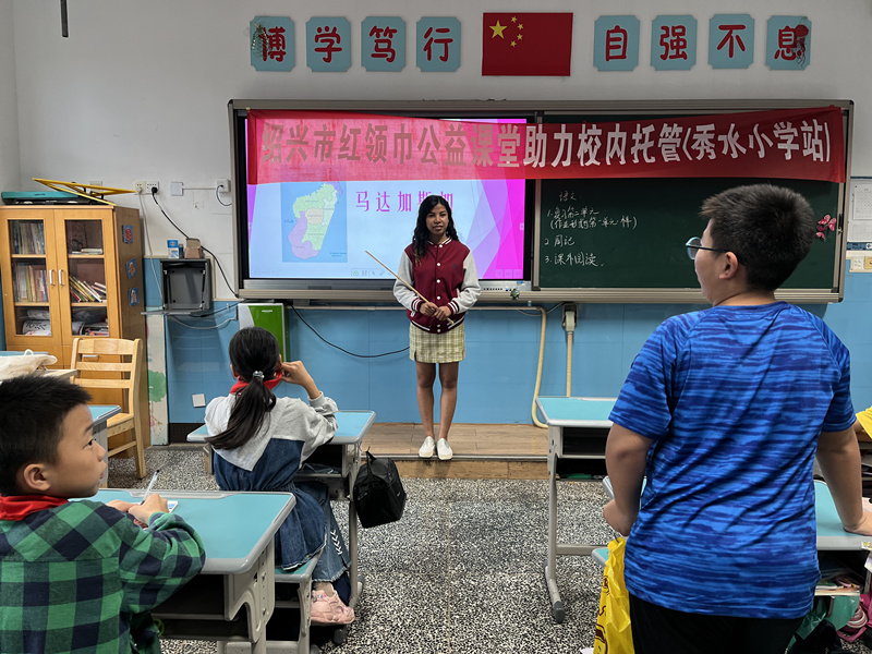 随着“双减”政策的落地实施,我校留学生志愿者积极响应绍兴团市委红领巾公益课堂的号召,投身到小学生课后托管服务中。