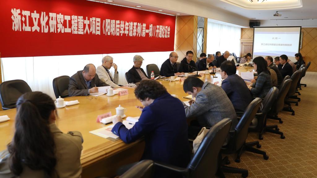 10月22日下午,我校召开浙江文化研究工程重大课题《阳明后学年谱系列(第一辑)》开题会。副校长寿永明、浙江省社科联副主席谢利根参加开幕式并致辞。复旦大学教授吴震、何俊,著名阳明学专家、中山大学教授陈立胜,浙江大学教授彭国翔,山东大学教授翟奎凤,浙江省社科院研究员王宇以及承担子课题的教授钱明、姚才刚、张昭炜等专家博士们参加了开题会。