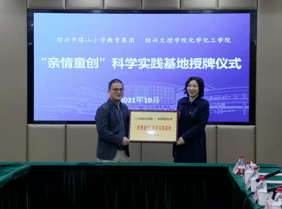 仪式由化学化工学院党委副书记徐青徐青主持。徐青表示,前期塔山小学教育集团与绍兴文理学院化学化工学院签订了党建契约,为更好的落实“双减”政策,提高教学质量,提升课后服务水平,化学化工学院与塔山小学教育集团共建“亲情童创”科学实践基地,开展亲情实验室和亲情创作坊实践活动。