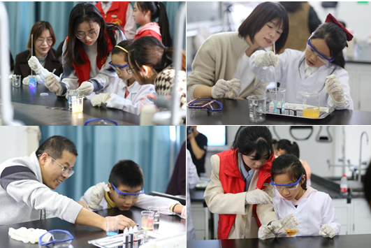 授牌仪式结束后,学生与家长在科普志愿者的带领下,前往科普基地开展亲情实验,体验奇妙的科学世界,增进家长与孩子之间的感情,通过“雾中精灵——神奇的丁达尔效应”和“彩虹雨密度实验”两个趣味实验,培养动手能力,激发学习兴趣,在发现问题,寻找答案,解决问题的过程中,提升科研探索的精神。