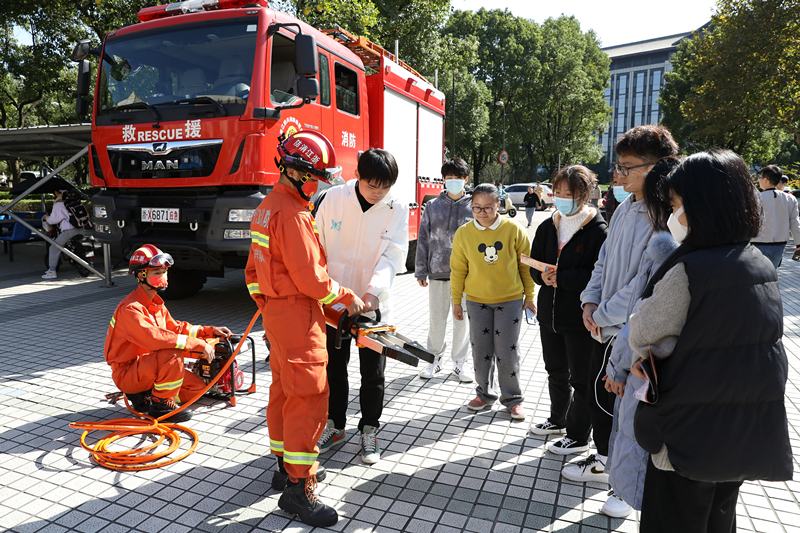 11月9日是全国第30个“119消防宣传日”,11月也是消防主题宣传月,为提高全体师生的消防安全意识,学校联系绍兴消防救援支队,以“落实消防责任,防范安全风险”为主题,在河西餐厅广场,通过实地展示消防救援器材、发放消防安全知识手册、讲解消防安全知识等方式进行消防安全宣传。