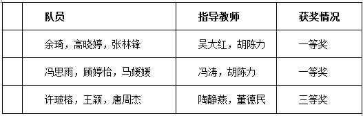 我校5支队伍参赛,最终获一等奖2组,三等奖1组。我校获优秀组织奖,我校吴大红,冯涛这两位老师获优秀指导教师。获奖名单如下: