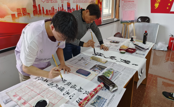 笔走龙蛇,势如卷云;丹青妙笔,纸面生风……华侨社区老党员朱师傅和文理学院书法学院的学生志愿者结合自身所见所闻所感,共同书写“八八战略”实施二十周年以来绍兴的新变化,以在绍兴看见生态之美、经济之美、社会和谐之美、民生幸福之美为切入点,笔下透露的是满满的幸福感、获得感、安全感。