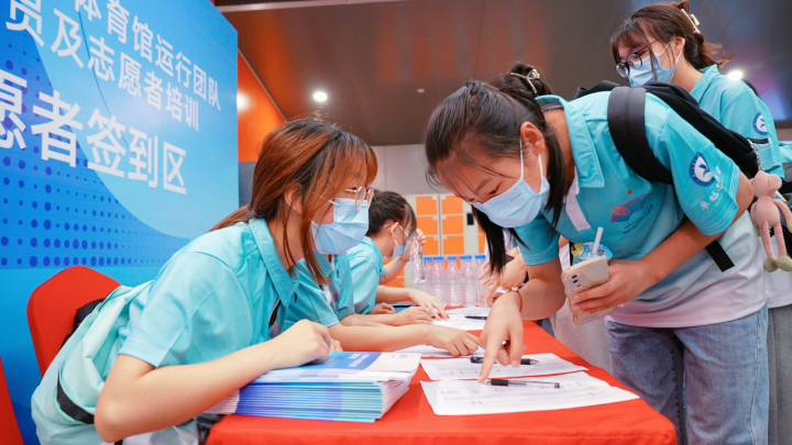 岗位培训环节,各业务领域主任分别带领不同业务领域志愿者分组进行实地踏勘及岗位培训。在培训过程中,绍兴文理学院的志愿者们热情饱满、井然有序地跟随领域主任实地踏勘了工作区域,认真记录注意事项,工作要点,积极提问,学习氛围浓厚。