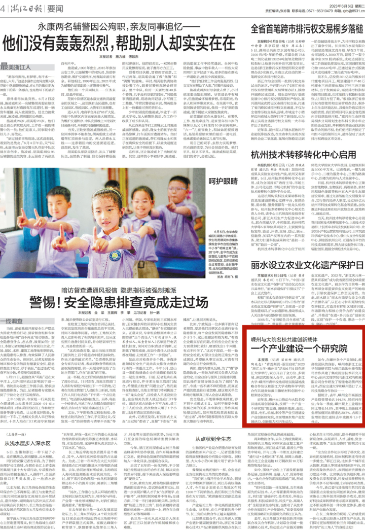 “青荟剡贤·浙里启杭”2023“浙江大学·嵊州日”活动6月5日在浙江大学举行,活动中,浙江大学·嵊州市青年校地双培实践基地战略合作协议和浙江大学动物科学学院合作共建蚕丝蛋白微纳材料创新中心框架协议签约。今日浙江日报对此进行报道。