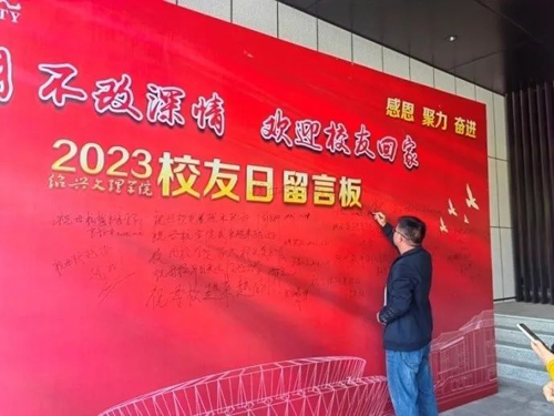 重游母校,忆往昔,记今朝。校友们找寻着以往的青春记忆,感慨着母校的焕然一新。为增加校友们返校体验感,学校也开放了校史馆,推出校园参观攻略,设置“重披学士服”环节,学弟学妹更是化身校友日志愿者,做好各项服务工作。校友们带着对母校的爱意,在签名板前,在合照框里,露出开心的笑颜,骄傲地签下姓名并写下真挚的祝福语,留下了满墙衷心的祝愿。