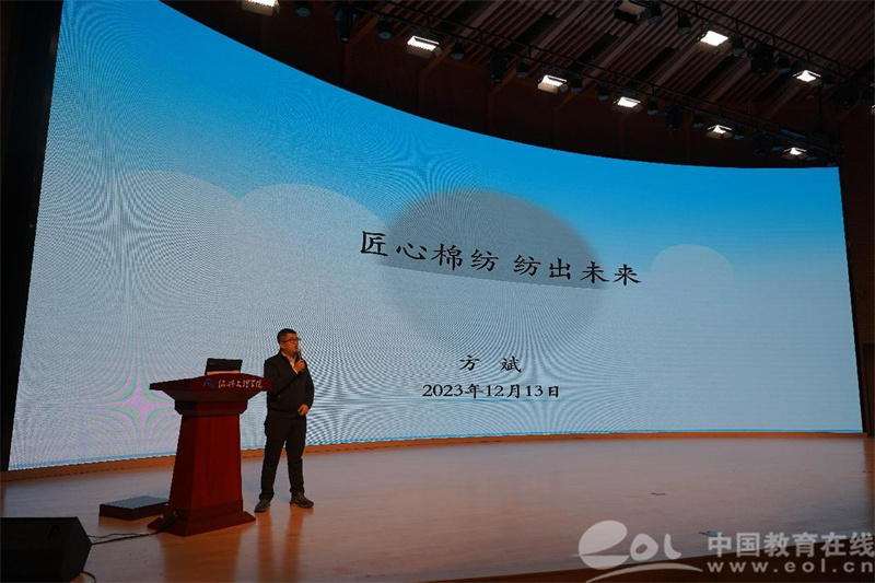 王刚强院长作了《匠心筑梦 奋进青春》的主题分享,他从自我简介、纺织工业机遇与挑战、纺织专业学生培育、纺织专业就业前景四个方面展开,解读了当下转型时期纺织学生的困惑,给予了同学们信心和鼓励。