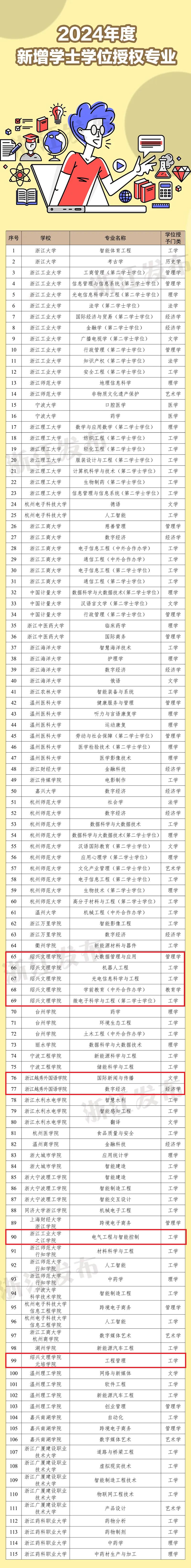 近日,浙江省学位委员会办公室印发《关于公布2024年度新增学士学位授权专业名单的通知》,经学校申报、专家评审、省学位委员会审议,同意新增浙江大学智能体育工程等115个专业(含第二学士学位专业32个)为学士学位授权专业。