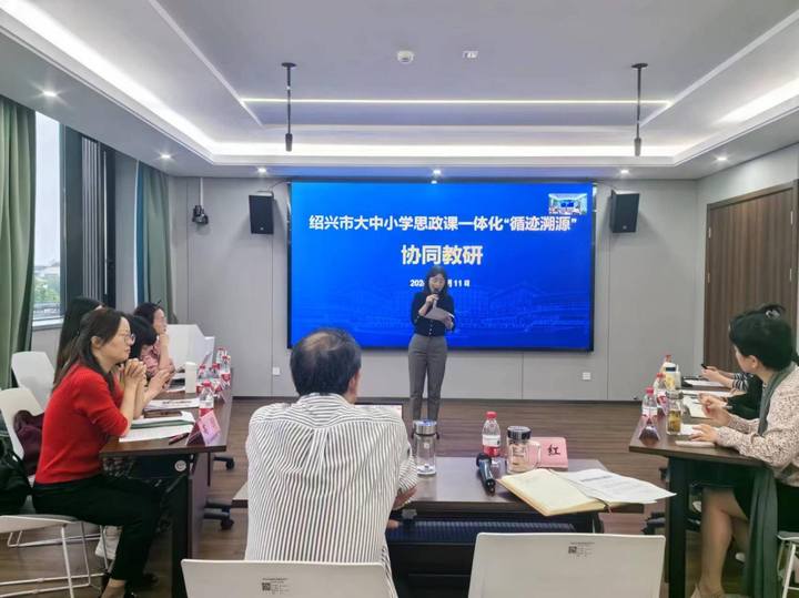 近日,绍兴文理学院马克思主义学院报告厅内,来自绍兴市大中小学思政课一体化名师工作室导师、骨干教师与思想政治教育(师范)专业的本研学生齐聚一堂,以“大中小学思政课一体化‘循迹溯源’协同教研”为主题“越思政”金课说课示范活动如期举行,并在第一时间集中学习习近平对学校思政课建设作出的重要指示和全国新时代学校思政课建设推进会的重要精神。