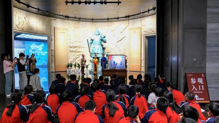 皮影折子戏《禹献妙计统天下》、情景短剧《八大臣共商舜禹禅让》、经典诵读《对话典籍里的尧舜禹》……5月8日,在大禹陵景区,绍兴文理学院联合杭州和绍兴的四所中小学校——绍兴市长城中学、柯桥区王坛镇中学、柯桥区王坛镇中心小学和杭州市文华中学共同举办了一场主题为“传承与自信:绍兴舜禹文化大中小杭绍学校联合研学”活动。100余名大中小学通过沉浸式教学,进一步加深了对舜禹文化的精神实质刻的体验和理解。
