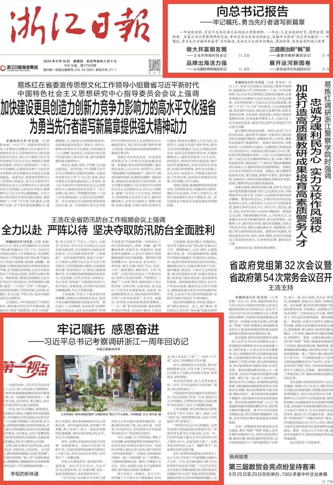 在习近平总书记考察浙江一周年之际,《浙江日报》推出“向总书记报告——牢记嘱托,勇当先行者谱写新篇章”特别报道。其中,记者回访了习近平总书记亲临过的诸暨市枫桥镇,聆听当地干部群众牢记总书记殷殷嘱托、奋力谱写中国式现代化浙江新篇章的故事。当天,《浙江日报》还专版报道了《绍兴:深耕“枫桥经验” 绘就平安画卷》。