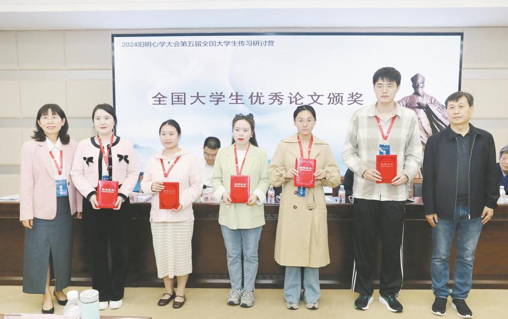 本报讯 昨天下午,2024阳明心学大会第五届全国大学生传习研讨营暨“新时代阳明文化的继承与发展”全国大学生阳明学研讨会在绍兴文理学院举行。来自天南海北的大学生们相聚风则江畔,共话阳明文化,共同研讨心学,以当代青年的视角,发掘阳明心学的时代价值,探讨推进王阳明“知行合一”精神在当代的传承,为2004阳明心学大会带来了青春活力和气息。