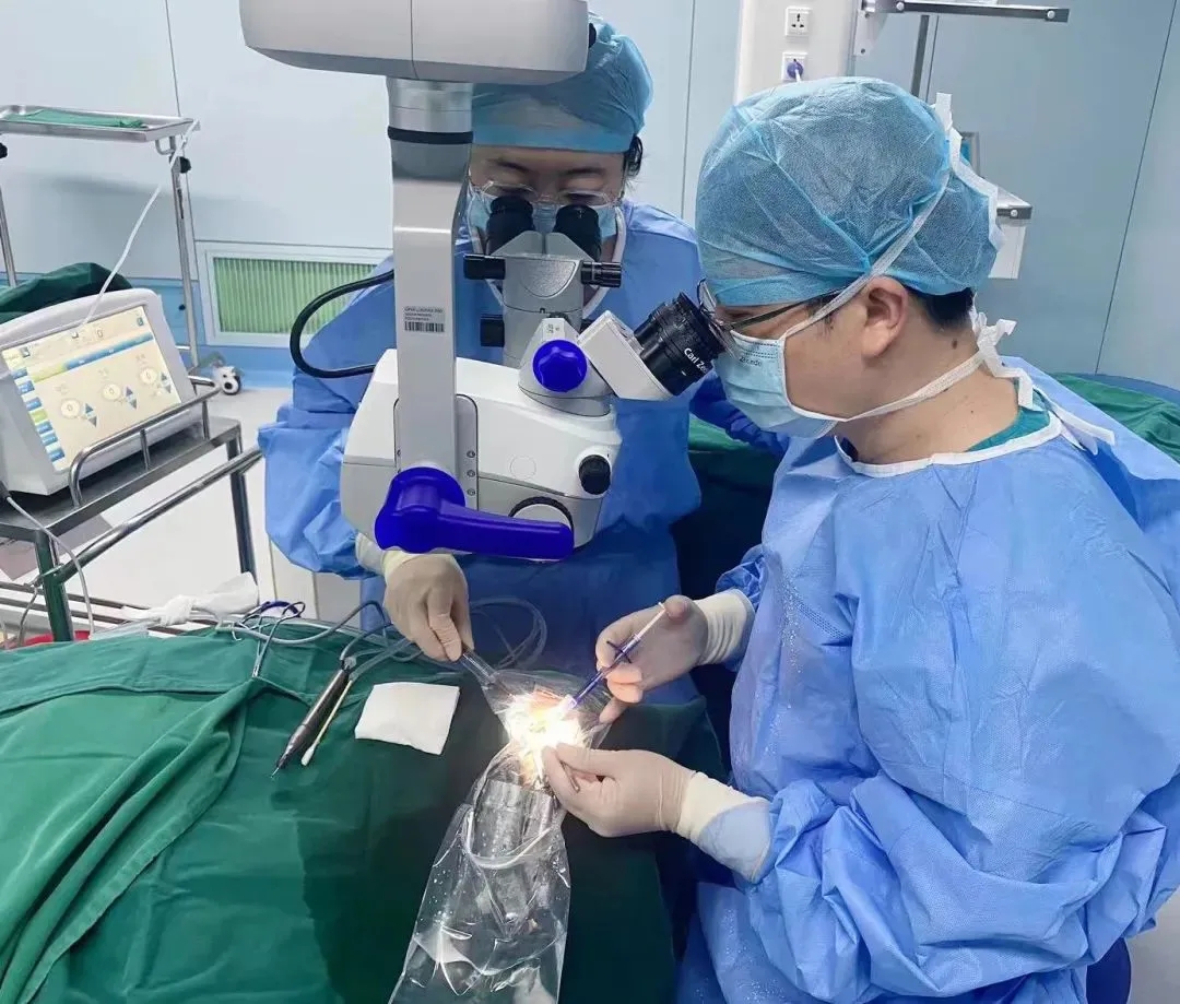 入疆第15天,朱越峰带领的眼科团队仅用20分钟,便顺利开展了首例白内障超声乳化摘除+人工晶体植入+房角分离术。