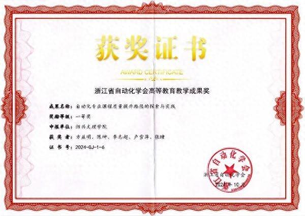 今日头条11月14日:方益明教授团队获浙江省自动化学会高等教育教学成果奖一等奖