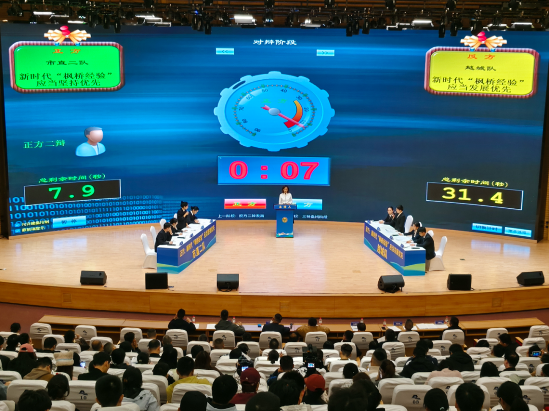 自今年6月启动以来,本次赛事历经多轮比拼,最终市直二队与越城队脱颖而出晋级决赛。决赛围绕“新时代‘枫桥经验’应当坚持优先还是发展优先”这一具有时代性与现实意义的辩题展开激烈交锋。双方辩手引经据典、逻辑缜密,从理论、实践、政策等多维度深度交锋,充分展现了全市法学法律工作者扎实的专业素养和敏锐的法治思维,彰显了新时代法治队伍的过硬本领与昂扬风采。