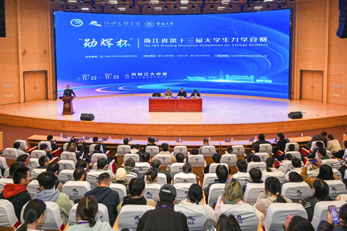 11月22日-23日,由浙江省大学生科技竞赛委员会主办,绍兴文理学院、宁波大学、浙江省力学学会承办的“勋辉杯”浙江省第十三届大学生力学竞赛顺利举办。浙江省大学生力学竞赛委员会主任杜建科,副校长柳国庆,浙江省大学生力学竞赛委员会副主任王惠明和全体参赛师生参加开幕式。
