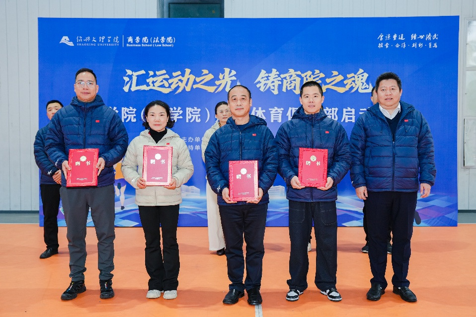 授旗仪式后,现场迎来了志愿服务与专业指导力量的注入。绍兴文理学院商学院党委书记徐青为崭新的体育赛事志愿服务队授旗,并向来自体育学院的四位专业老师颁发了体育育人导师聘书。“专业指导”与“志愿赋能”的双轮就此合璧,为师生们的运动热情与交流互动提供坚实支撑。