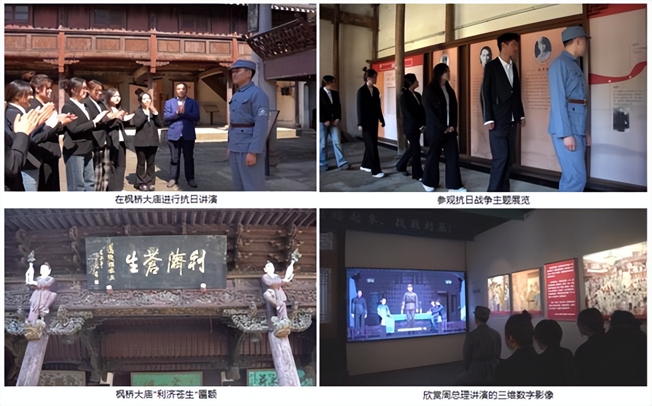 回首1939年3月31日:利济苍生,恩泽后世 绍兴市诸暨枫桥镇是“枫桥经验”的诞生地。周总理来到这片红色的热土,在枫桥大庙进行抗日讲演,这极大鼓舞了诸暨人民的抗战热情,“只要我们全民族团结一致,坚持抗日,最后胜利一定是我们的”。利济苍生,恩泽后世,抗日战争的最终胜利真的属于我们,属于我们年轻又幸福的一代,我们应倍加珍惜来之不易的和平与美好生活。 从府山越王台到枫桥大庙,学生们表示要立足于绍兴这片红色沃土,继承革命先烈遗志,用艺术探寻红色文脉,以创新弘扬革命精神,在民族复兴的伟大征程中贡献自己的青春力量。(绍兴文理学院:沈真波)