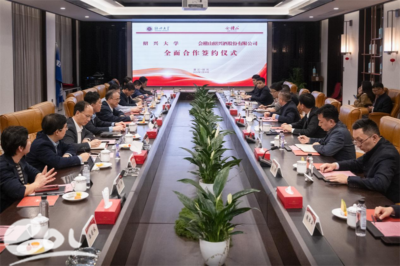 崔凤军对“会稽山”长期以来对学校的关心和支持表示感谢。他指出,绍兴是一座被黄酒醇香浸润的历史文化名城,会稽山绍兴酒是行业标杆,是绍兴城市的名片,百年匠心传承、千年酒脉赓续,与绍兴大学“扎根绍兴、服务地方”的办学使命高度契合、同频共振。学校始终把服务地方经济社会发展作为办学兴校的生命线,此次双方携手共进,正是学校践行校地共生、校企共赢的生动实践,双方在人才培养、技术研发、成果转化等领域的务实合作则为本次全面战略合作奠定了坚实基础。
