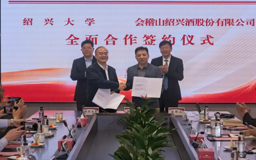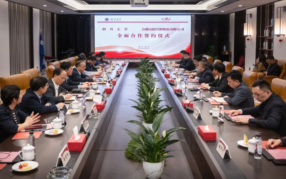 3月30日,绍兴大学与会稽山绍兴酒股份有限公司全面合作签约仪式在绍兴会稽山黄酒小镇举行。学校办公室、科技处、地方合作处、生命与环境科学学院负责人,生命与环境科学学院、商学院、蔡元培艺术与设计学院教师代表等参加签约仪式。