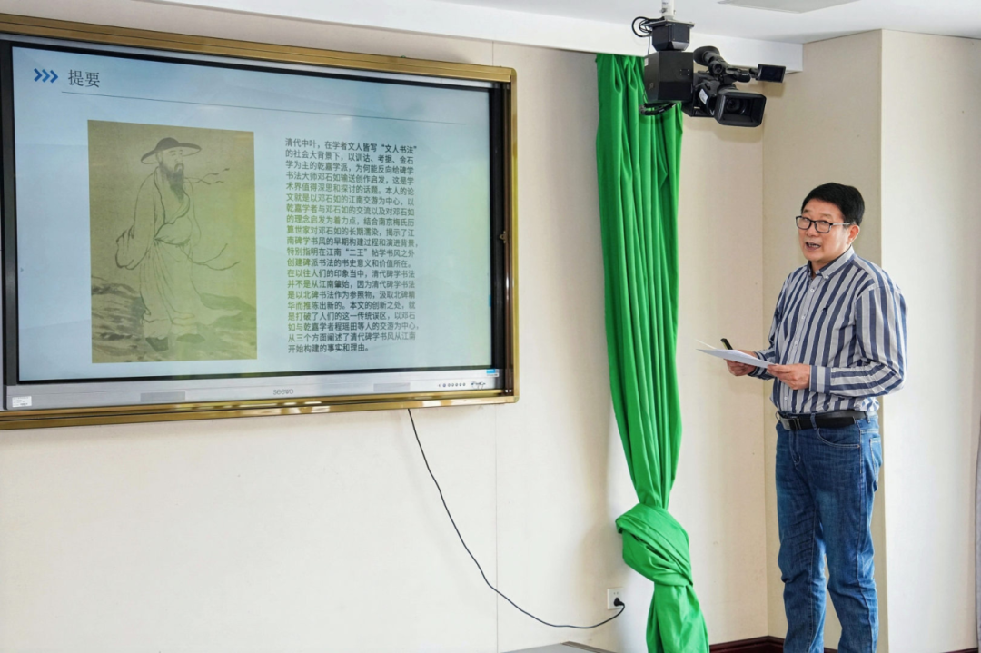 “研究员论坛”上,吕金光、吴慧平、顾工、毛万宝、元国霞、祝帅、陈一梅、王伟林、姚宇亮等十位学者围绕全球史视野下的海外书法研究、元明诗词中的《兰亭序》、当代草书品格重塑、宗白华美学重读等话题展开研讨。金丹、张建军分任主持人,蔡清德、周斌担任学术交流嘉宾。
