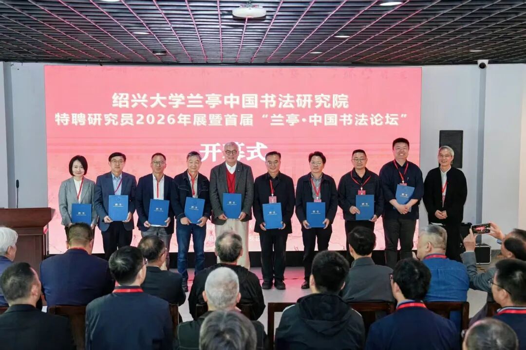 暮春兰亭,翰墨再续。2026年4月18日,由浙江省书法家协会、绍兴大学联合主办,绍兴大学兰亭中国书法研究院承办的“特聘研究员2026年展”暨首届“兰亭·中国书法论坛”在绍兴大学兰亭书法艺术学院隆重开幕。这是绍兴大学正式挂牌更名后举办的首场全国性书法学术盛会。