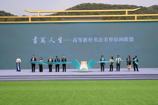 当天上午,在绍兴兰亭景区第四十二届兰亭书法节开幕式上,中国科学技术大学人文与社会科学学院党委书记李雅清、北京师范大学启功书院院长邓宝剑、云南大学艺术与设计学院党委书记徐媛媛、浙江财经大学原党委副书记黄建新、新疆理工学院人文社会科学学院美育教师廖进粮、广州新华学院校长王庭槐、合肥幼儿师范高等专科学校艺术系主任偶潇潇、山东开放大学书法学院执行院长刘晓春、绍兴职业技术学院执行校长黄柏江、绍兴大学副校长陈均土等十所高校代表共同发布联盟成立倡议,并为联盟揭牌。
