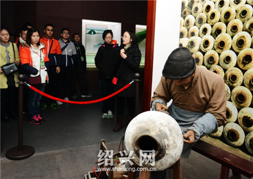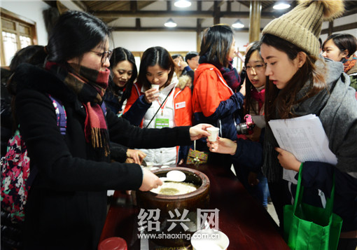 “元红、加饭、善酿、香雪,原来绍兴黄酒按含糖量不同分好多品种。”在黄酒博物馆,学生们在酿酒师傅的介绍下,按步骤观色、闻香、品尝。“真好饮!”学生们禁不住甘醇浓郁的美酒诱惑,一次次举杯。