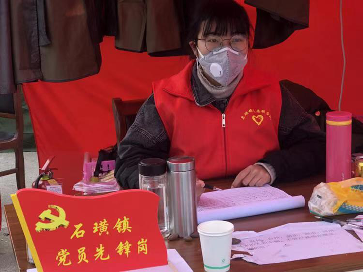 今年春节期间,史雨茜所在的石璜镇和邻镇崇仁镇先后出现新型冠状病毒引发的肺炎确诊病例。关键时刻,作为社区一员的她,第一时间在父母的支持和陪同下,勇敢“逆行”,主动前往社区登记请战。经社区防疫干部的统一组织和培训,史雨茜被派往石浦镇范油防疫关卡进行值守,并连续一周严格落实对来往车辆及车内人员情况的询问登记及体温测量等工作,站好了防疫攻坚时期志愿服务的每一班岗,获得社区干部的肯定和表扬。