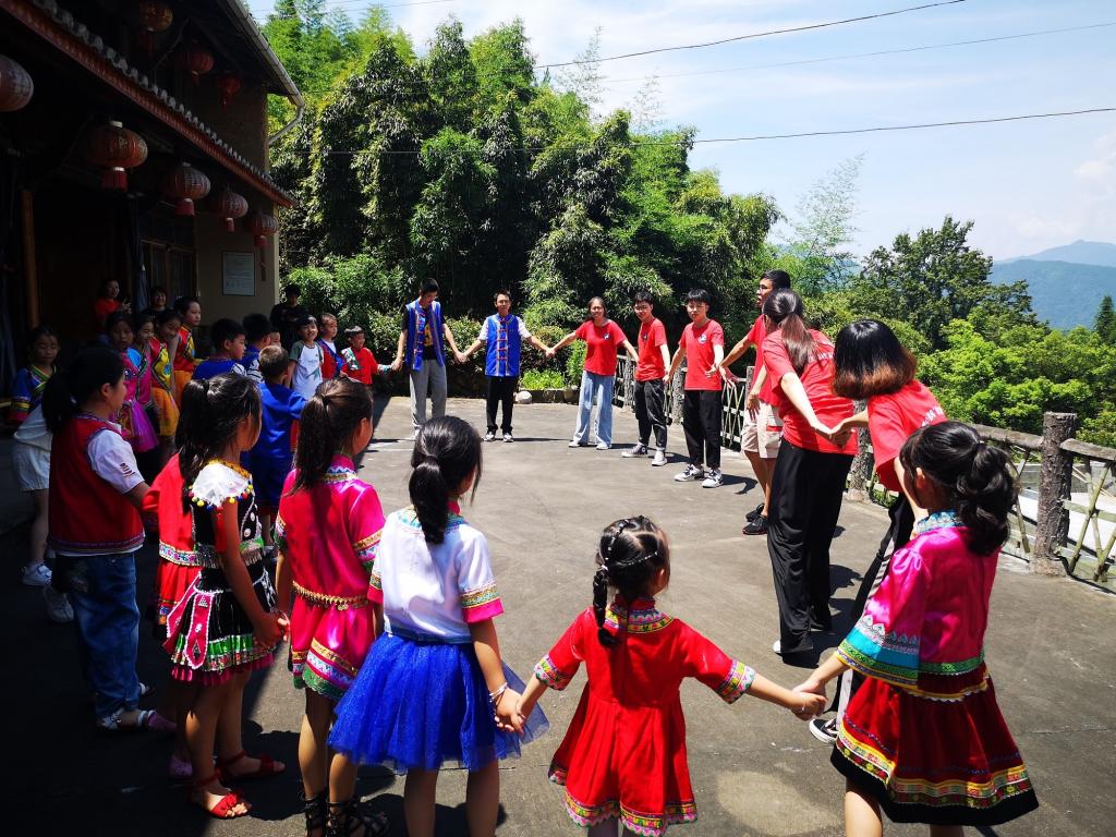 7月,绍兴文理学院“关爱小候鸟”教育帮扶团在丽水市景宁畲族自治县的八个村开展了教育帮扶活动。景宁地处浙南山地中部,地形复杂,峰峦耸立,构成了“九山半水半分田”和“两山夹一水,众壑闹飞流”的地貌格局。“关爱小候鸟”帮扶站点从海拔120米的渤海镇到海拔1030米的大漈乡,一路走来跋山涉水。在这样山连山、水映水的古村落里,热情好客的畲族人民聚居在此。“关爱小候鸟”教育帮扶团在传承多年帮教经验的基础上,根据8个帮扶村170余名孩子的不同情况,提供了文化知识、技能兴趣、地方文史、团队拓展四个模块的13门课程。同时还设有一对一和一对多的文化知识辅导,以课程教学的专业性、互动性,播种好每一朵娇嫩的花朵。