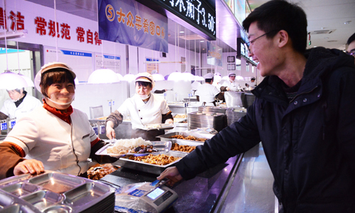 红烧狮子头,猪肉蛋饺,清炒土豆丝,葱焖豆腐……在绍兴文理学院元培学院兴越楼食堂,三个姑娘前摆着的菜不算少,可她们也已经打好了心中的小算盘。“女孩子饭吃得少,我们三个人拼一拼,多拿几个菜,少拿碗米饭分着吃,这样营养均衡,也不会浪费。”纺织服装与艺术设计分院视传1901班的周凯莉同学展示了她们特地领来分饭的空碗,解释道。中午11点50分,正值用餐的高峰期,记者观察到有不少结伴而来的同学也采取了这样的做法,把食堂的“一人两菜”吃成了颇有烟火气的“三菜一汤”,互相分享自己的饭菜,把“共享”理念融入“节约”行为,在青年大学生中正流行起来。