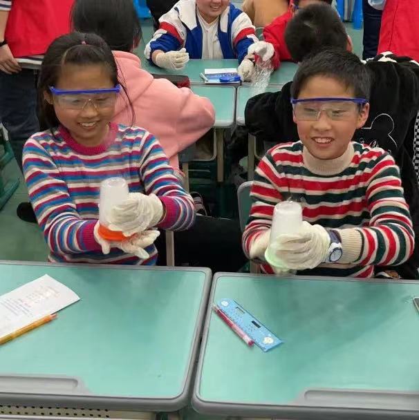 本周在绍兴市塔山中心小学和绍兴市北海小学开设的是”袅袅仙境“神奇的干冰秀趣味科普实验课程。