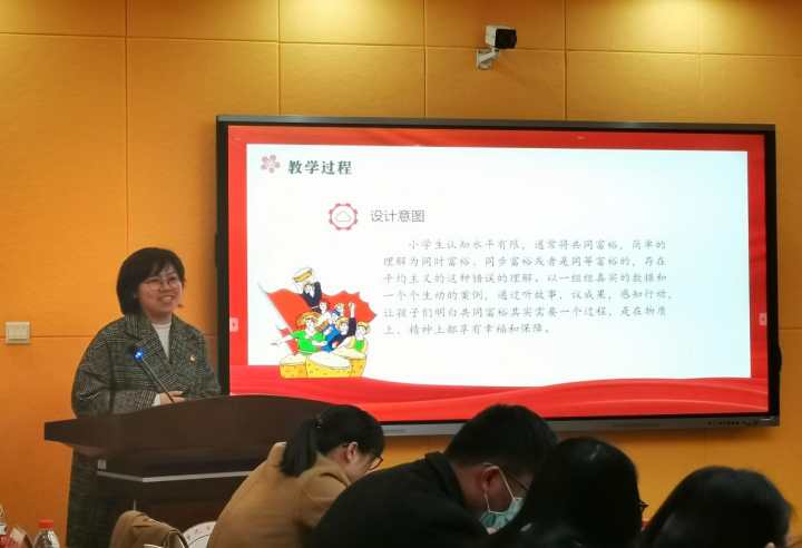 鲁迅小学莫岚老师、建功中学陈利琴老师、稽山中学张美老师分别以“共画同心圆,齐走富裕路——‘蛋糕’做大了同时要分好”“小村庄、大能量——‘云松密码’助力乡村共富”和“新发展理念推动经济高质量发展”为题,分享了各自对于“共同富裕”思政课的教学设计和感悟反思。绍兴文理学院马克思主义学院王宇丰博士则通过“扎实推动高质量发展建设共同富裕示范区——以坡塘村现场教学为例”的教学分享,从说教材、说学情、说学法、说教学思路和课后反思几个方面来展开。