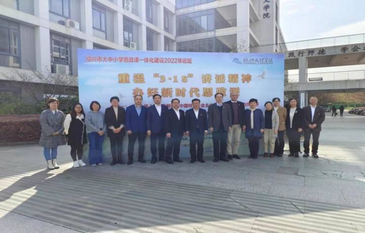 “蝶变,从‘越’开始。共富,从‘浙’起步。本节课以网红打卡地云松村以小见大,以思政课实践研学游为载体,探索云松村的变革发展密码为主线,为乡村振兴提供‘云松经验’……”绍兴市建功中学的陈利琴老师正在分享她的教学设计和课后反思。3月18日,绍兴文理学院马克思主义学院联合绍兴市教育教学研究院、越城区教师发展中心、稽山中学、建功中学和鲁迅小学等单位,开展“重温‘3·18’讲话精神,办好新时代思政课”暨大中小学《习近平新时代中国特色社会主义思想学生读本》(以下简称“《读本》”)协同教研活动。